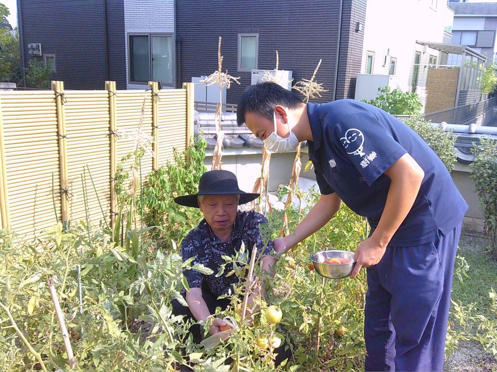 樹楽のお庭で実った夏野菜を収穫しました。